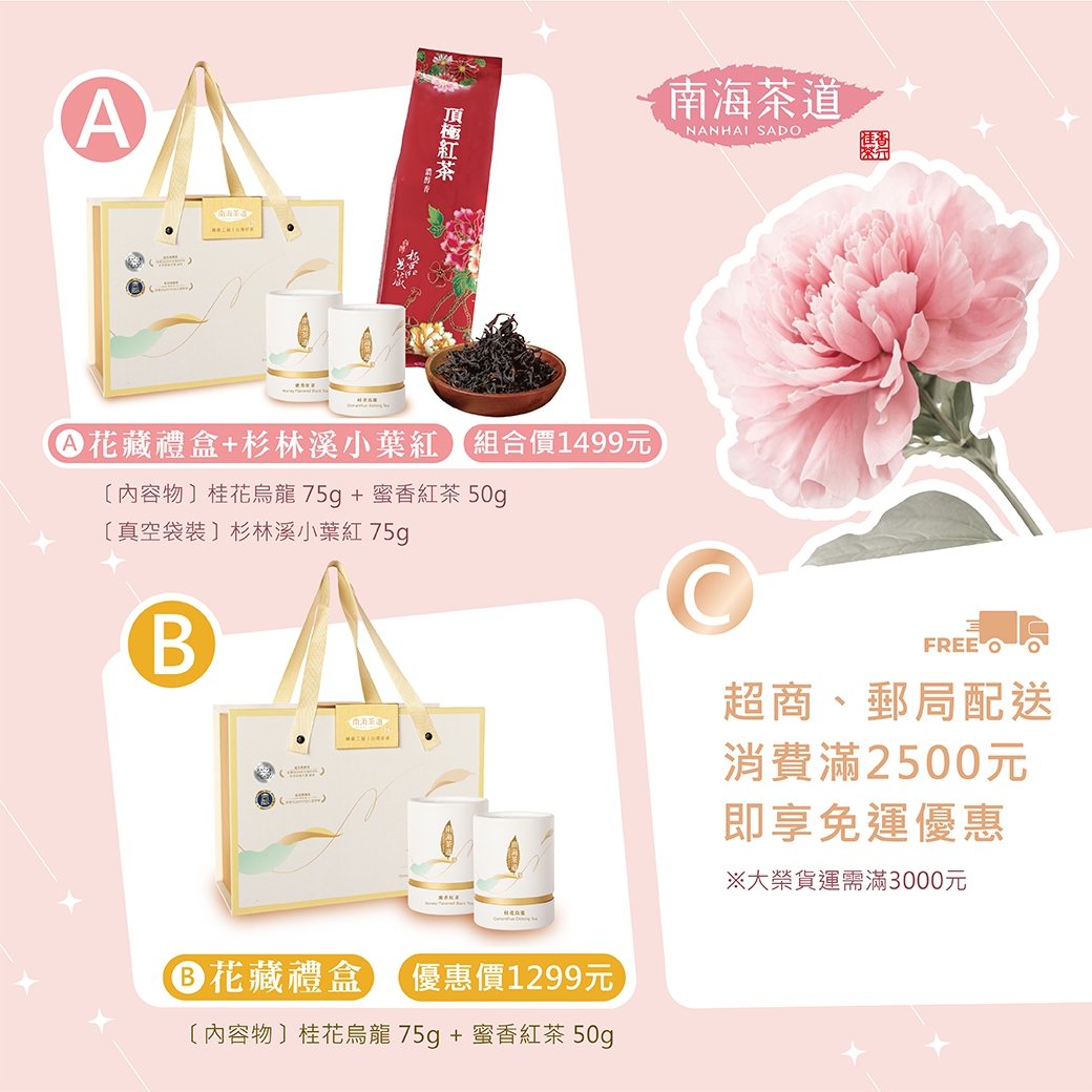 <桂花烏龍75g+蜜香紅茶50g+杉林溪小葉紅75g> 一次帶走花香+紅茶,送禮更有份量